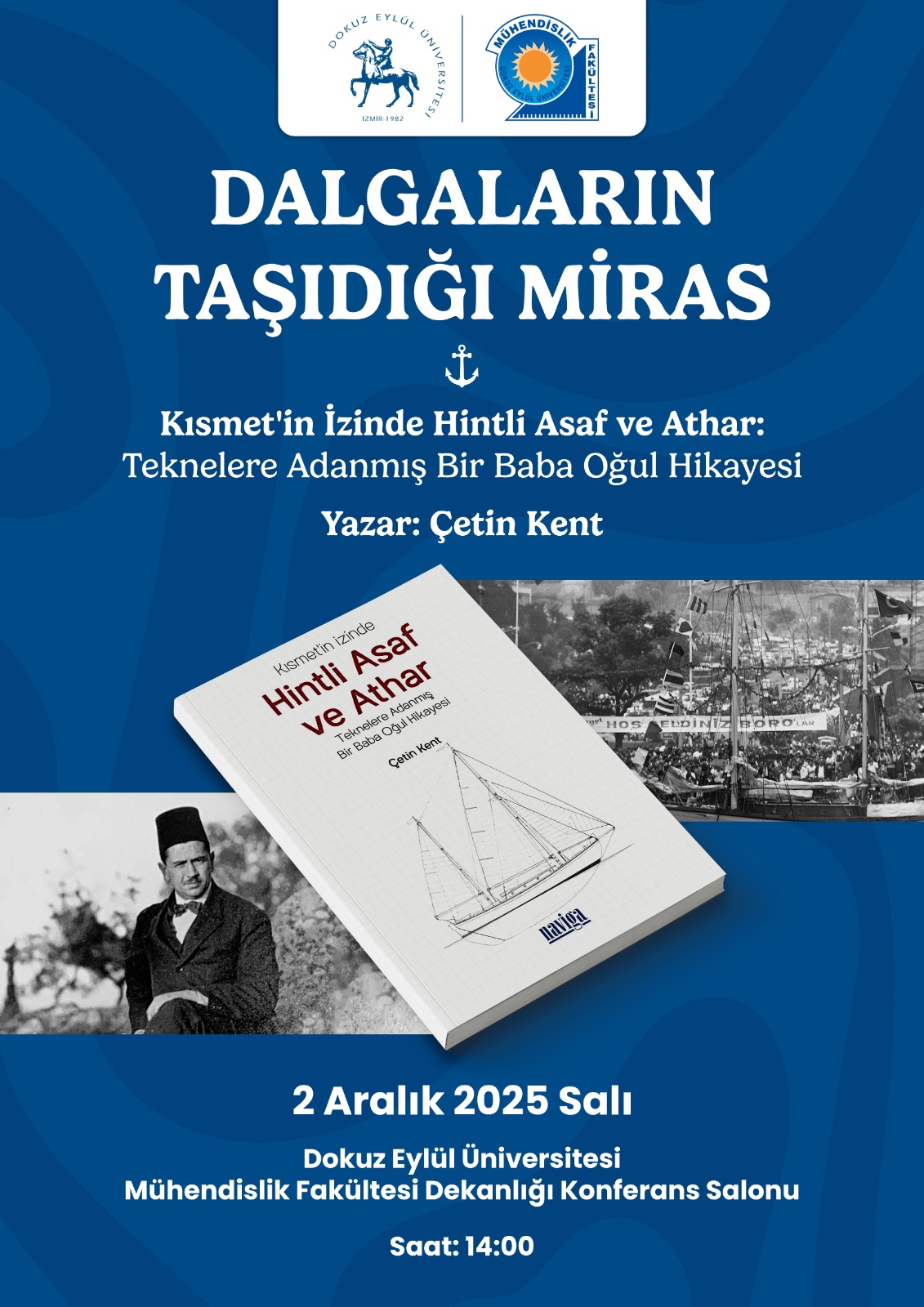 02 Aralık2025 Salı günü, saat:14:00’de Fakültemiz Dekanlık Konferans Salonunda Kısmet’in İzinde Hintli Asaf ve Athar kitabının yazarı, denizci, senarist ve İnşaat Mühendisi Çetin KENT ile gerçekleştirilecek olan söyleşiye katılımınızı dilerim.